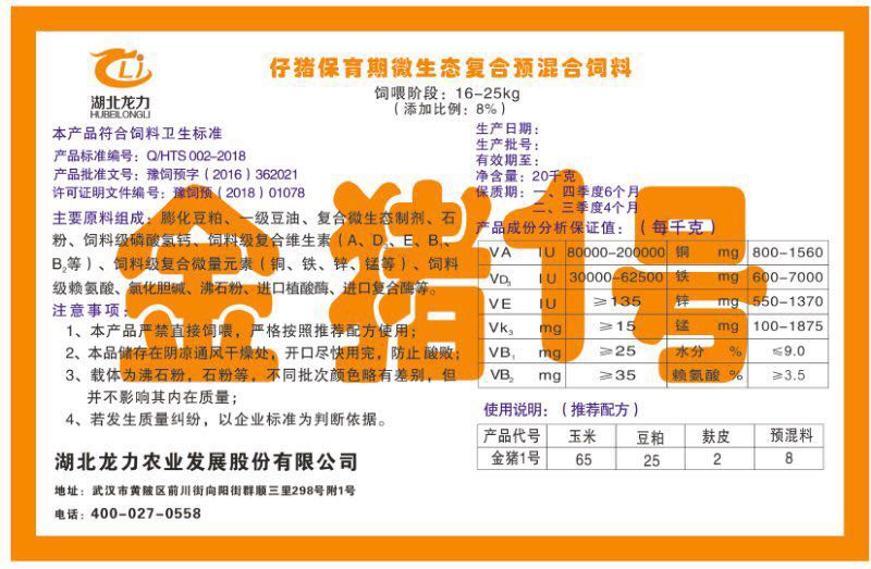 湖北龍力農(nóng)業(yè)發(fā)展股份有限公司坐落于武漢市黃陂區(qū)前川街向陽街群順三里298號附1號。公司成立于2014年6月,公司自成立以來把“創(chuàng)全球最大養(yǎng)豬綜合服務(wù)”為企業(yè)愿景。致力于打造教保料品牌”作為公司發(fā)展的明確目標(biāo)。公司一直致力于豬營養(yǎng)的研究和開發(fā),積極與國內(nèi)外高校和科研機(jī)構(gòu)合作,推廣養(yǎng)豬技術(shù)、動物營養(yǎng)新概念,向世界農(nóng)牧企業(yè)學(xué)習(xí)與合作。公司采用國內(nèi)先進(jìn)的生產(chǎn)工藝,選擇高精度電子配料秤,高均勻度、無殘留混合機(jī)等先進(jìn)設(shè)備....